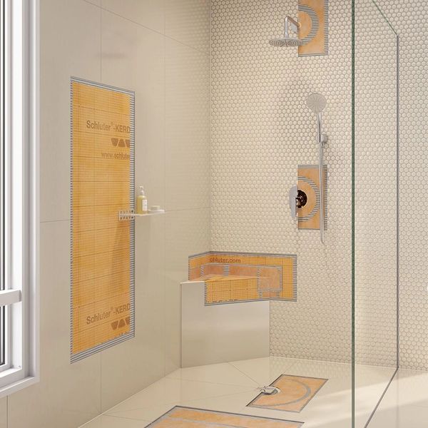 The Schluter®-Shower System is an integrated family of products that together form a fully bonded, watertight assembly for tiled showers. The Schluter®-Shower System eliminates the risk of failures due to water and vapor penetration and dramatically reduces total installation time. From drains to shower benches to waterproofing pipe seals, Schluter®-Systems offers everything you need to ensure a dependable and watertight installation.